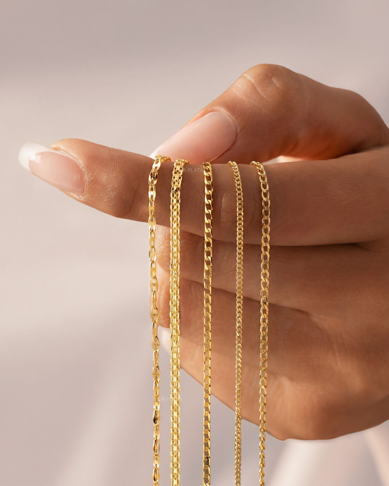 Cadenas de oro 18K ideales para lucir solas o acompañar tus dijes favoritos. Diseños únicos y atemporales para todos los estilos.